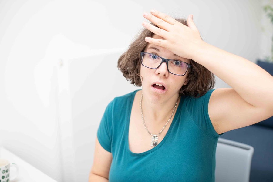 Eine weitere gute Möglichkeit, um den Druck rauszunehmen, ist dir zu überlegen was im schlimmsten Falle eintreten kann und was bestenfalls passieren kann. Dann hast du beide Fälle vor Augen und meist liegt der Ausgang der Situation irgendwo dazwischen. Es wird weder ganz schlimm, noch super positiv, sondern irgendwo dazwischen liegen. Aber es hilft, sich alles vor Augen zu führen und meist ist es dann gar nicht so schlimm und man kommt von alleine wieder etwas runter und wird ruhiger.
